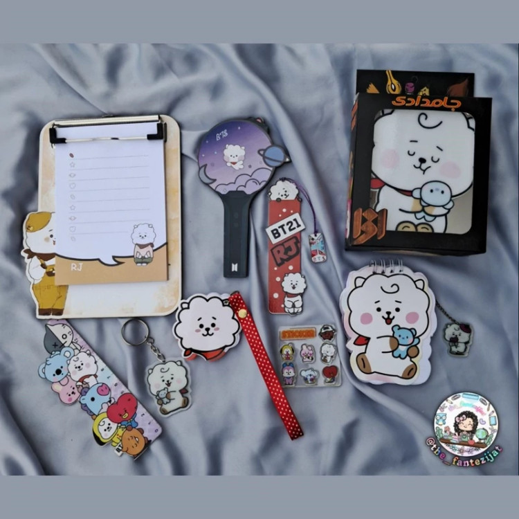 سلام سلاااام😍🎀 اومدم با یه ست خفن و اقتصادی👀🙈 این پک شامل : 1- نوت پد 2- استیکر 3- خط کش 4- جا کلیدی 5- بوک مارک 6- تخته شاسی 7- دفترچه روبان دار 8- آینه چوبی طرح دار 9- جاقلمی ( جامدادی ) 10- دفترچه سیمی آویز دار