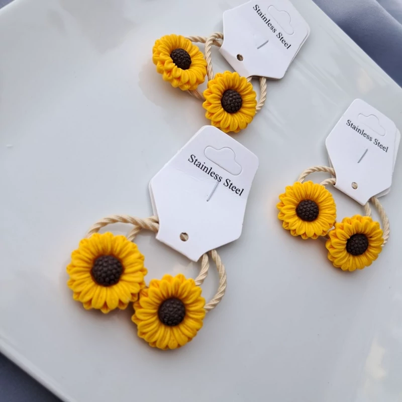 کشمو گل آفتابگردون 🌻 دوتایی , کش لیزری قابل ست کردن با گیره های بالا